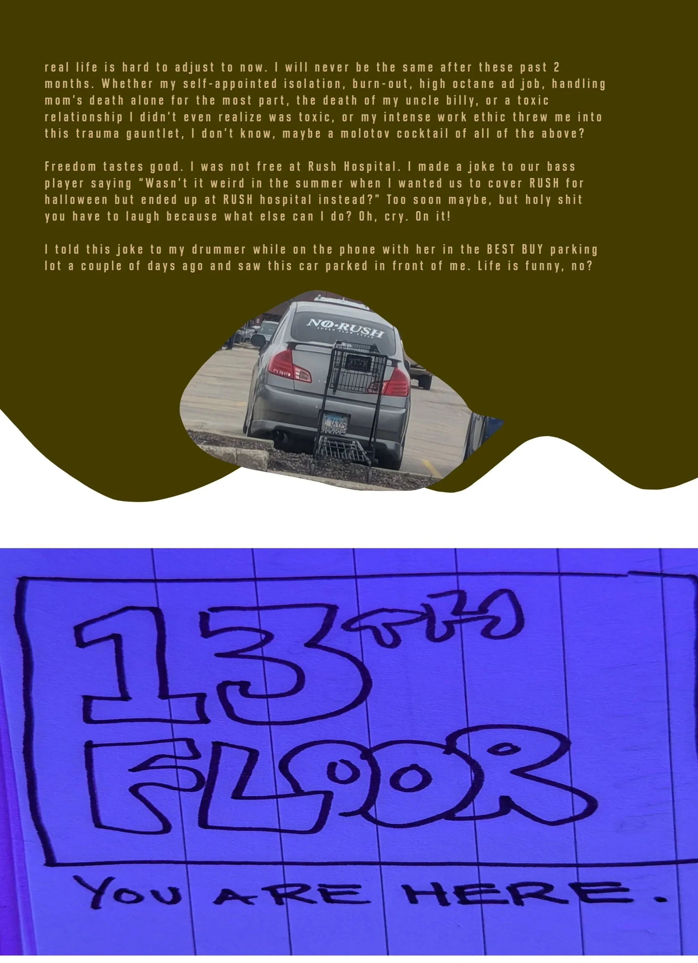 I came back into the hotel room crying as my band mates were jumping with joy. Supposedly our bass player’s dad had a friend who was a semi-truck driver that was heading from Detoit to Chicago that very second! What are the chances?! We felt like Kevin McCallister’s mom in Home Alone when John Candy and his polka crew scooped her up in their Budget rental van and drove her straight to Chicago. The problem was that he wasn’t going to arrive at the hotel until 2am and what the fuck would I do about my car?